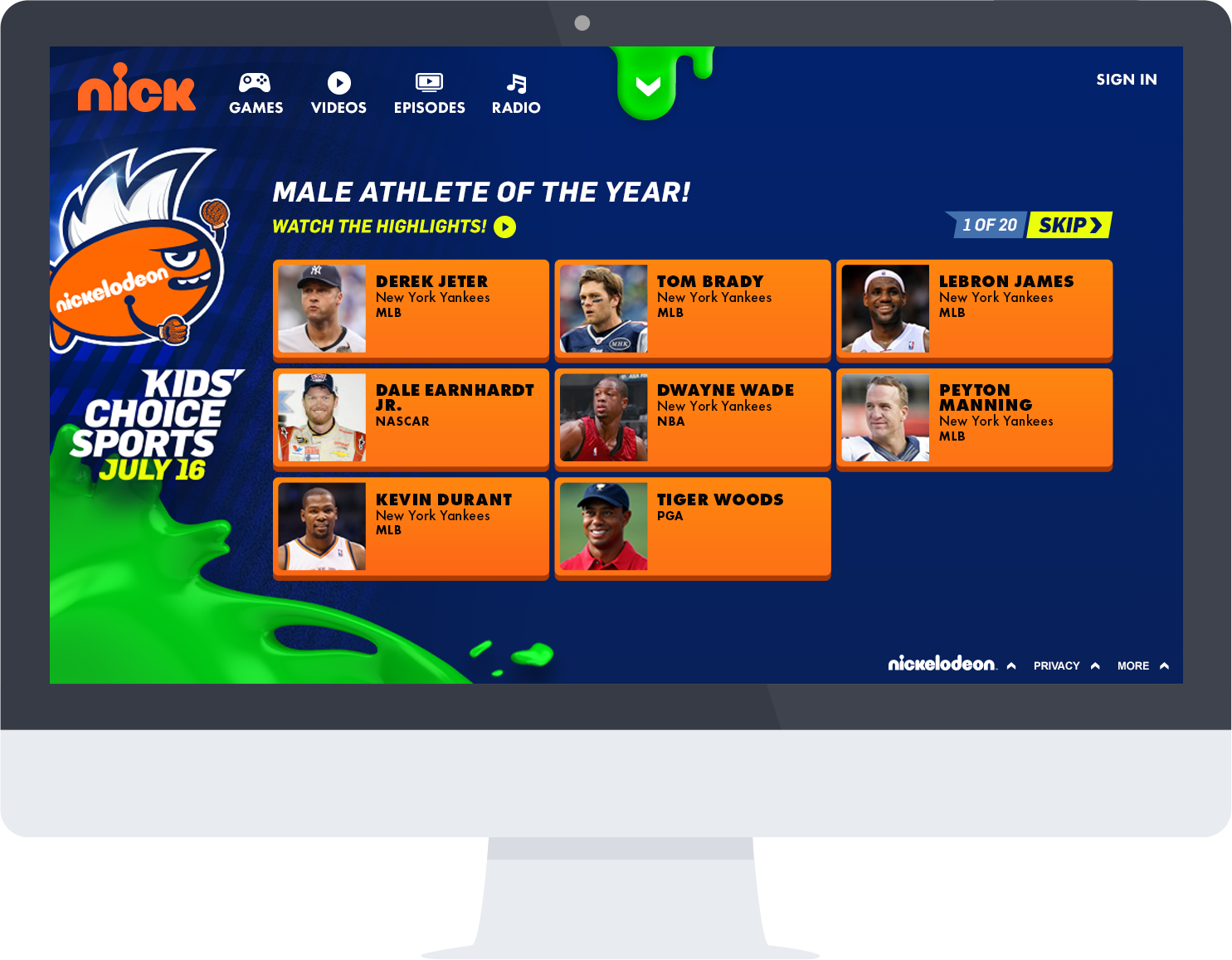 We were promoting the award show on all our platforms, also in the Amazon Store, for users to download the Nick app to cast their vote. Marketing designs were created for tablet wake screens as well.