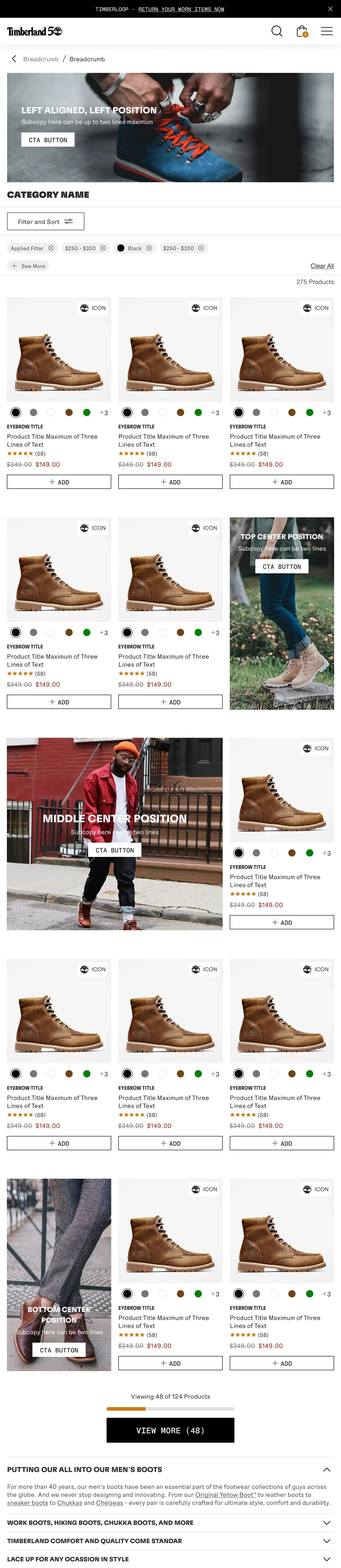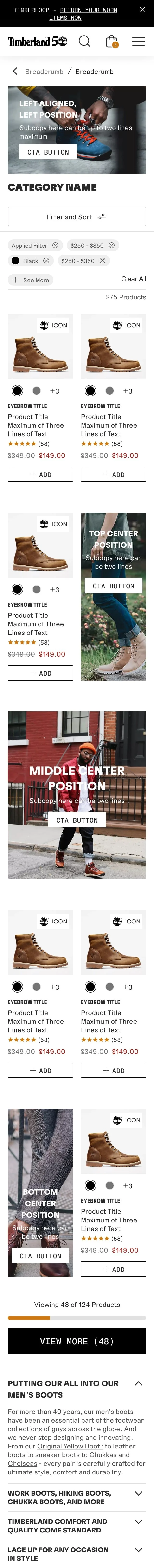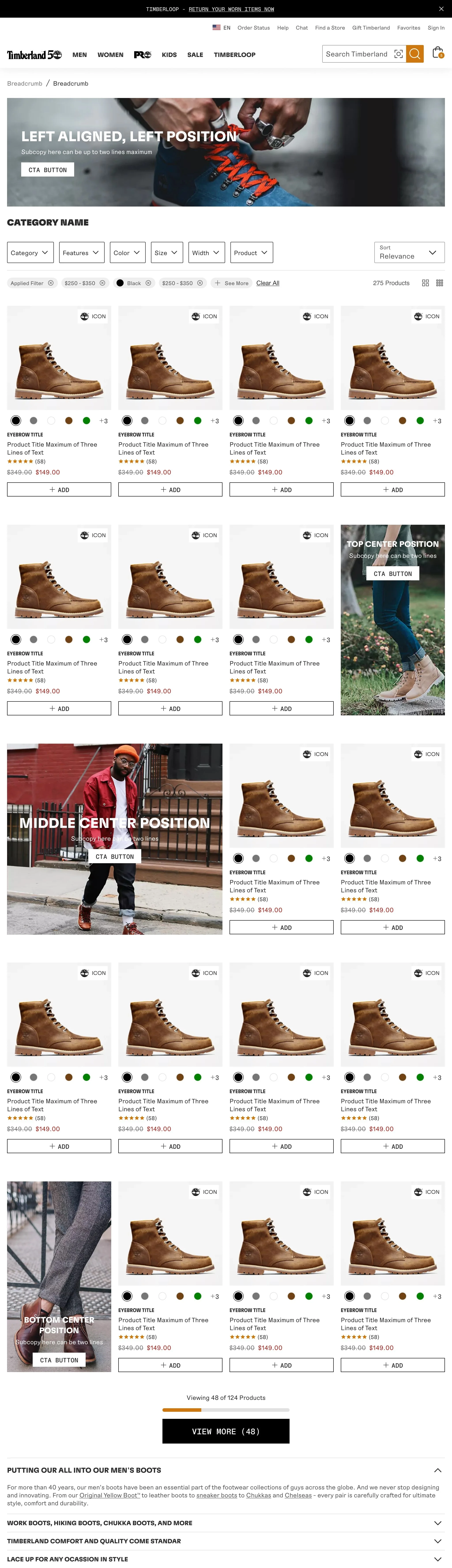 I supported the Timberland brand, coming into the process where wires were already established. New & unique pages still needed to be created and designed.
