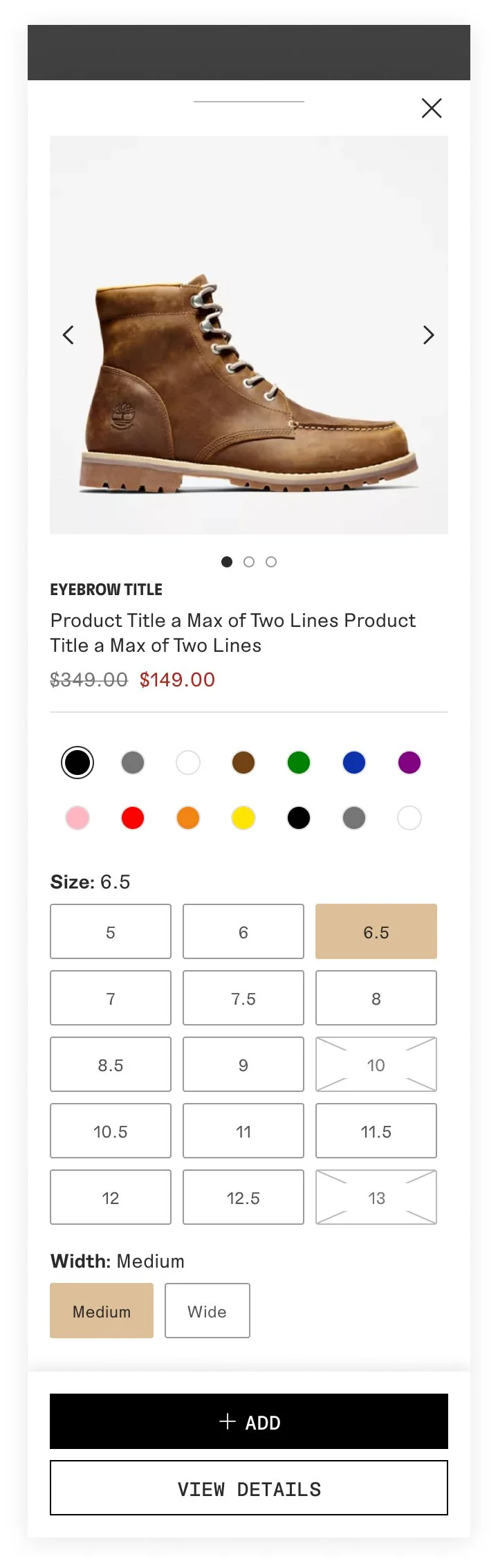 Users would have the option to quick shop right from the PLP. An overlay would appear and show a condensed version of the product description page (excluding full product features, reviews, recommendations).