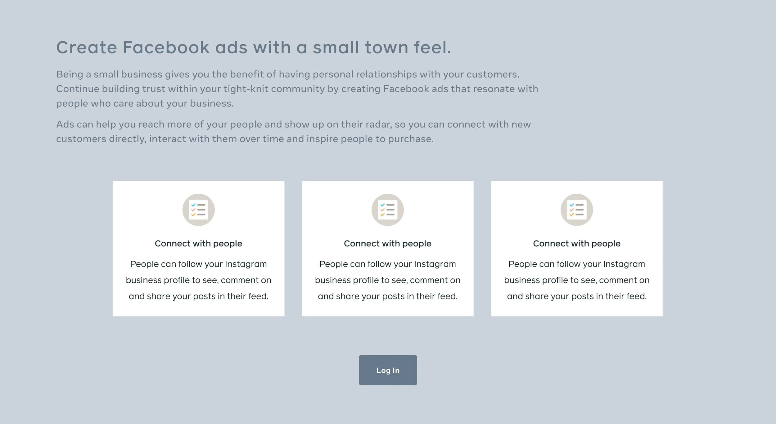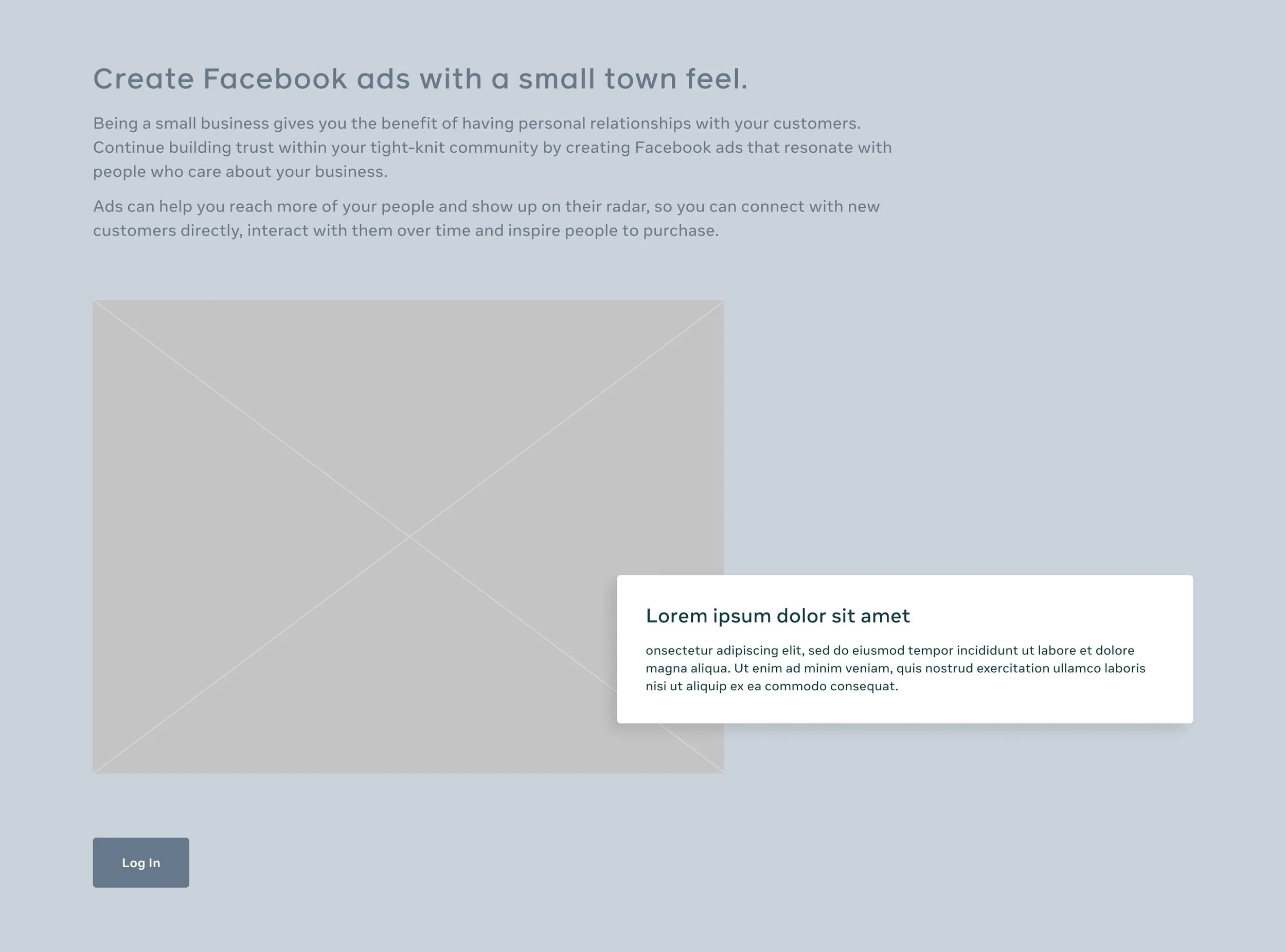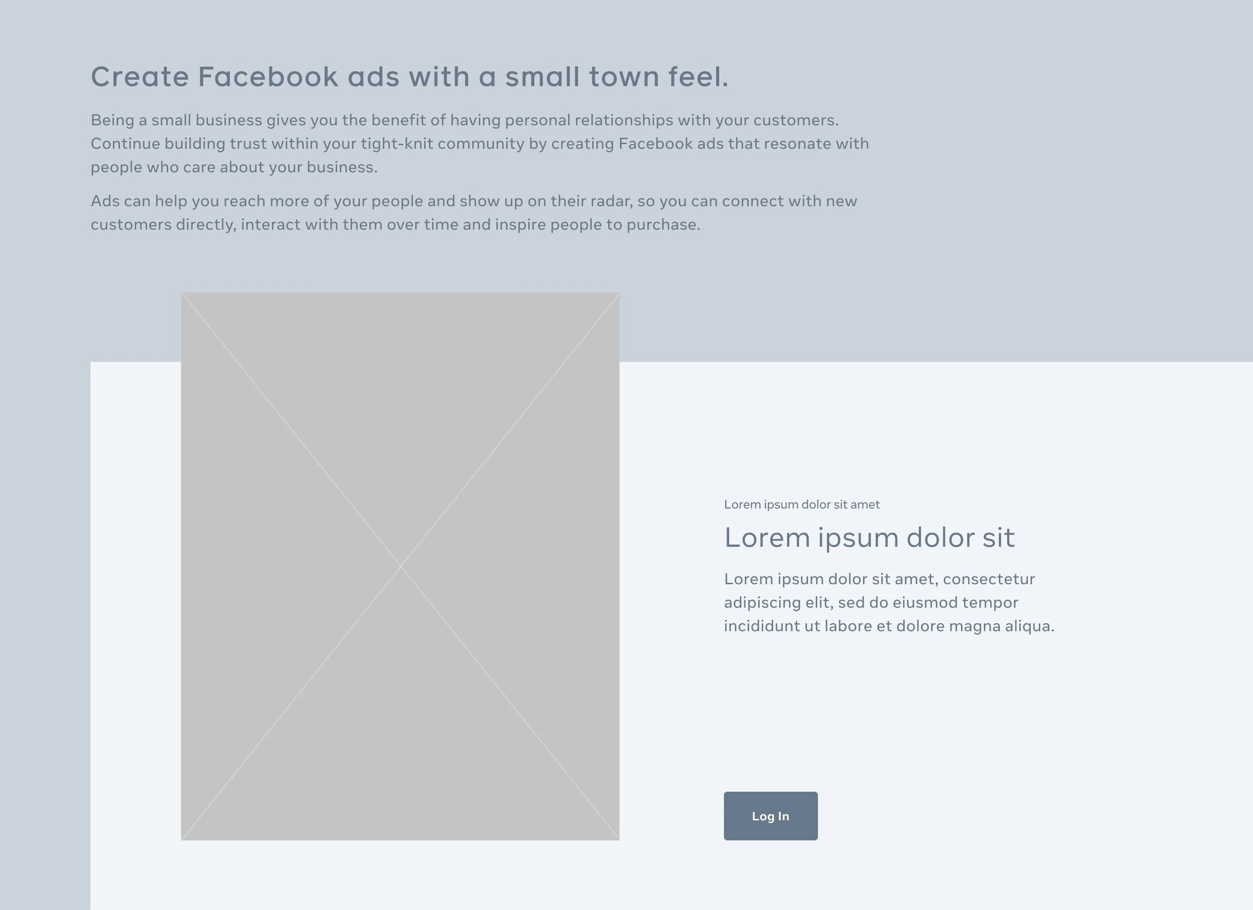 Meta has landing page template components designers can use to easily structure out a design. There are multiple treatments are all kinds of content; Hero components, content blocks, media lockups, text lists, card lists, and wayfinding).